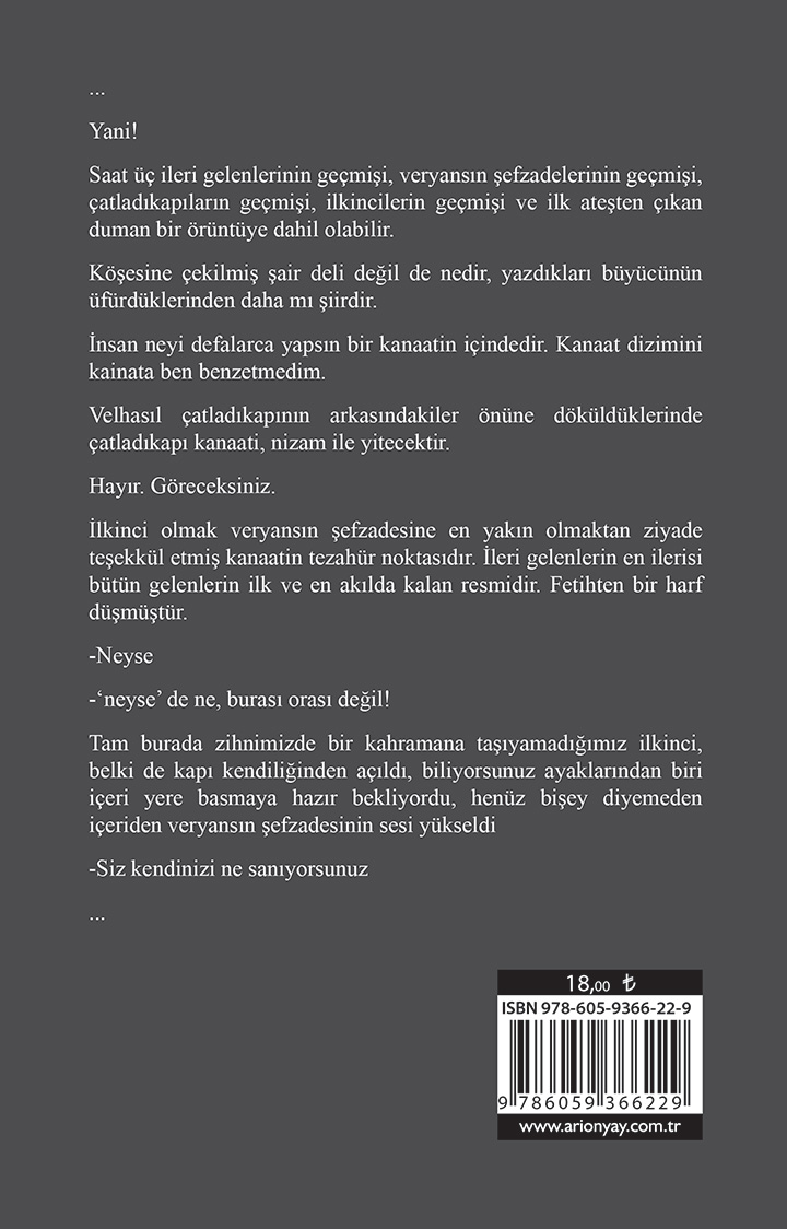 Tam burada zihnimizde bir kahramana taşıyamadığımız ilkinci, belki de kapı kendiliğinden açıldı, biliyorsunuz ayaklarından biri içeri yere basmaya hazır bekliyordu, henüz bişey diyemeden içeriden veryansın şefzadesinin sesi yükseldi